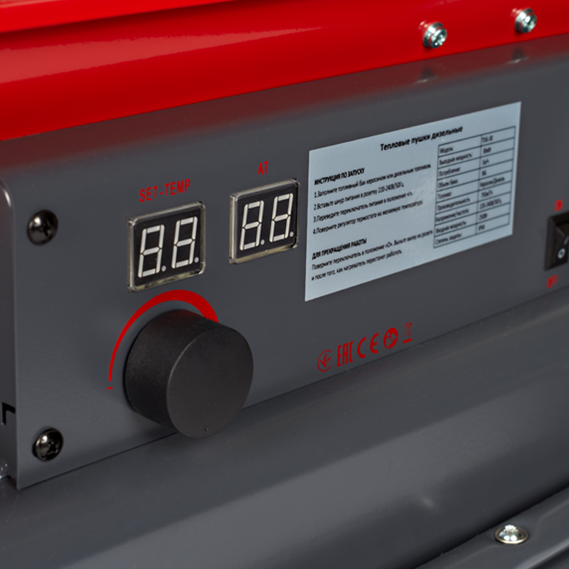 Вместительный топливный бак дизельной тепловой пушки для продолжительного рабочего цикла без потерь времени на дозаправку.