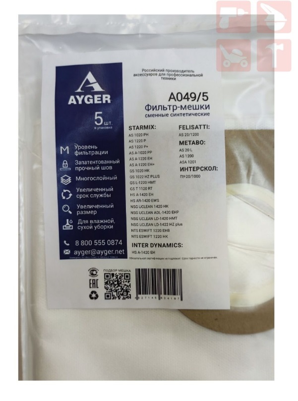 Фильтр-мешки сменные синтетические AYGER A049/5 FELISATTI, METABO, STARMIX, ИНТЕРСКОЛ