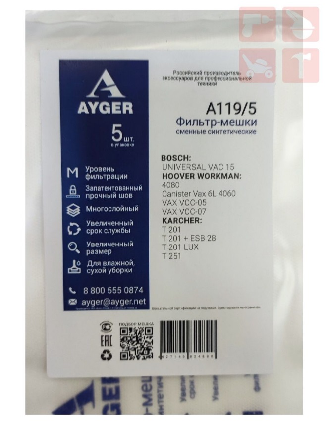 Фильтр-мешки сменные синтетические AYGER A119/5 BOSCH UNIVERSAL VAC 15