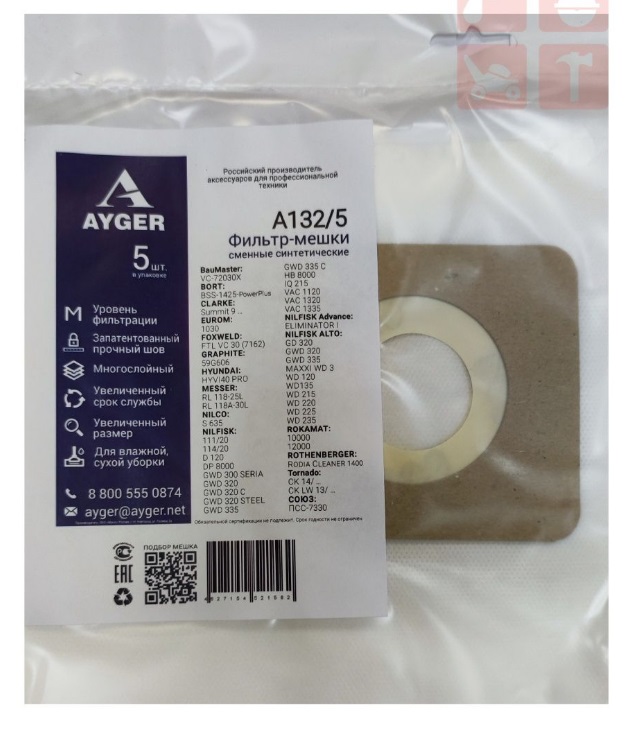 Фильтр-мешки сменные синтетические AYGER A132/5 BauMaster, BORT, GRAPHITE, MESSER, NILFISK, ROTHENBE