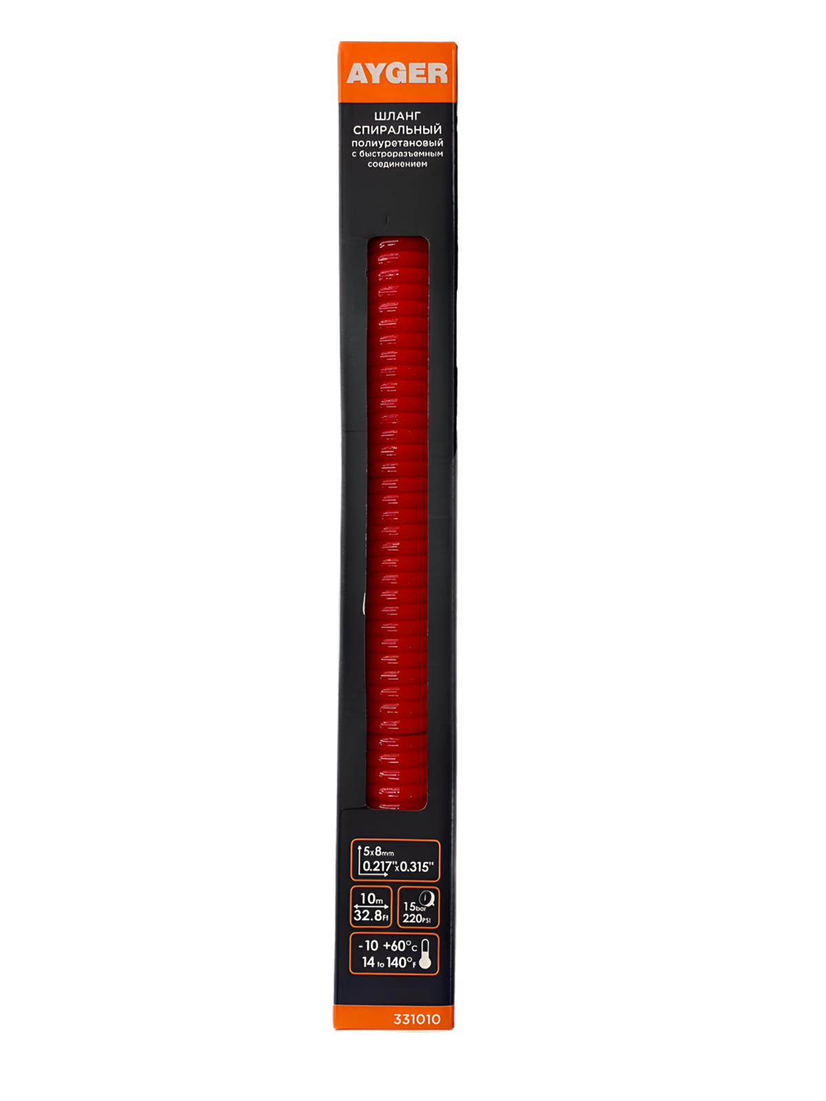 AYGER Шланг 10M 5*8mm спиральный полиуретановый с быстроразъемным соединением, гибкий однослойный