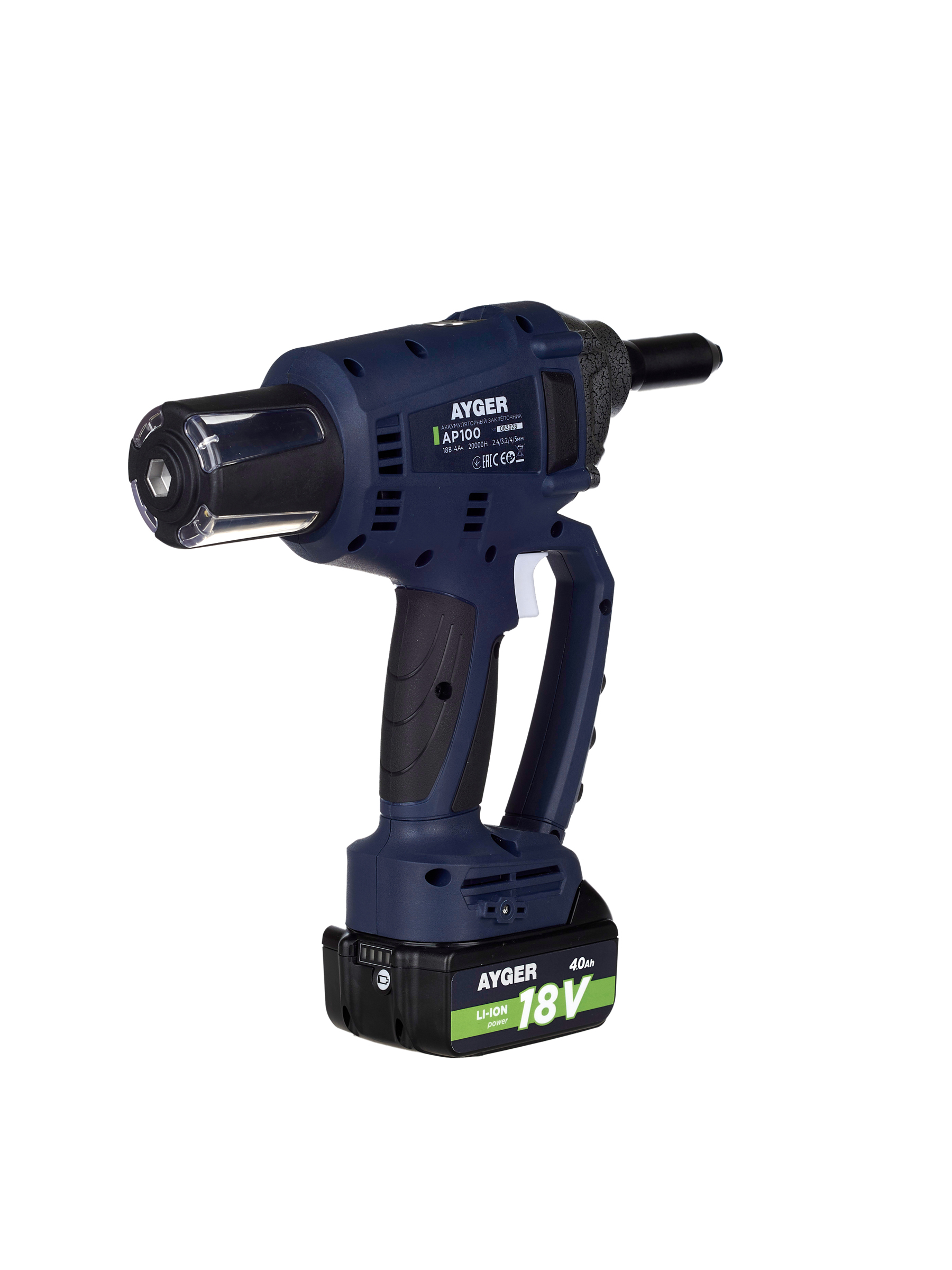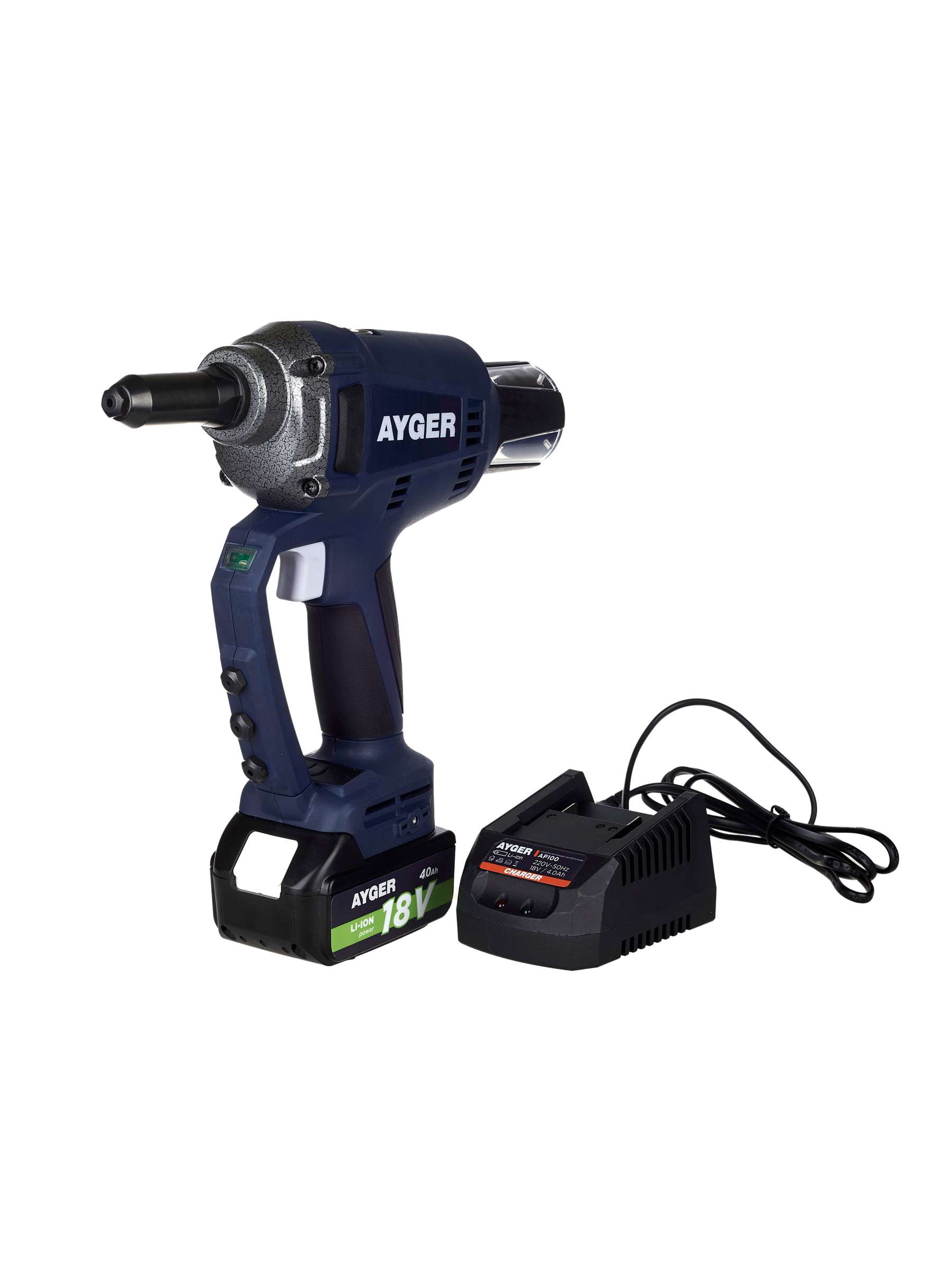AYGER Заклёпочник аккумуляторный AP100 (с одним аккумулятором 4Ah )